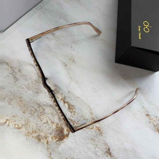 Acetato liviano de alta calidad, resistente y cómodo para el uso diario. Patillas internas en tono nude con acabado mate.