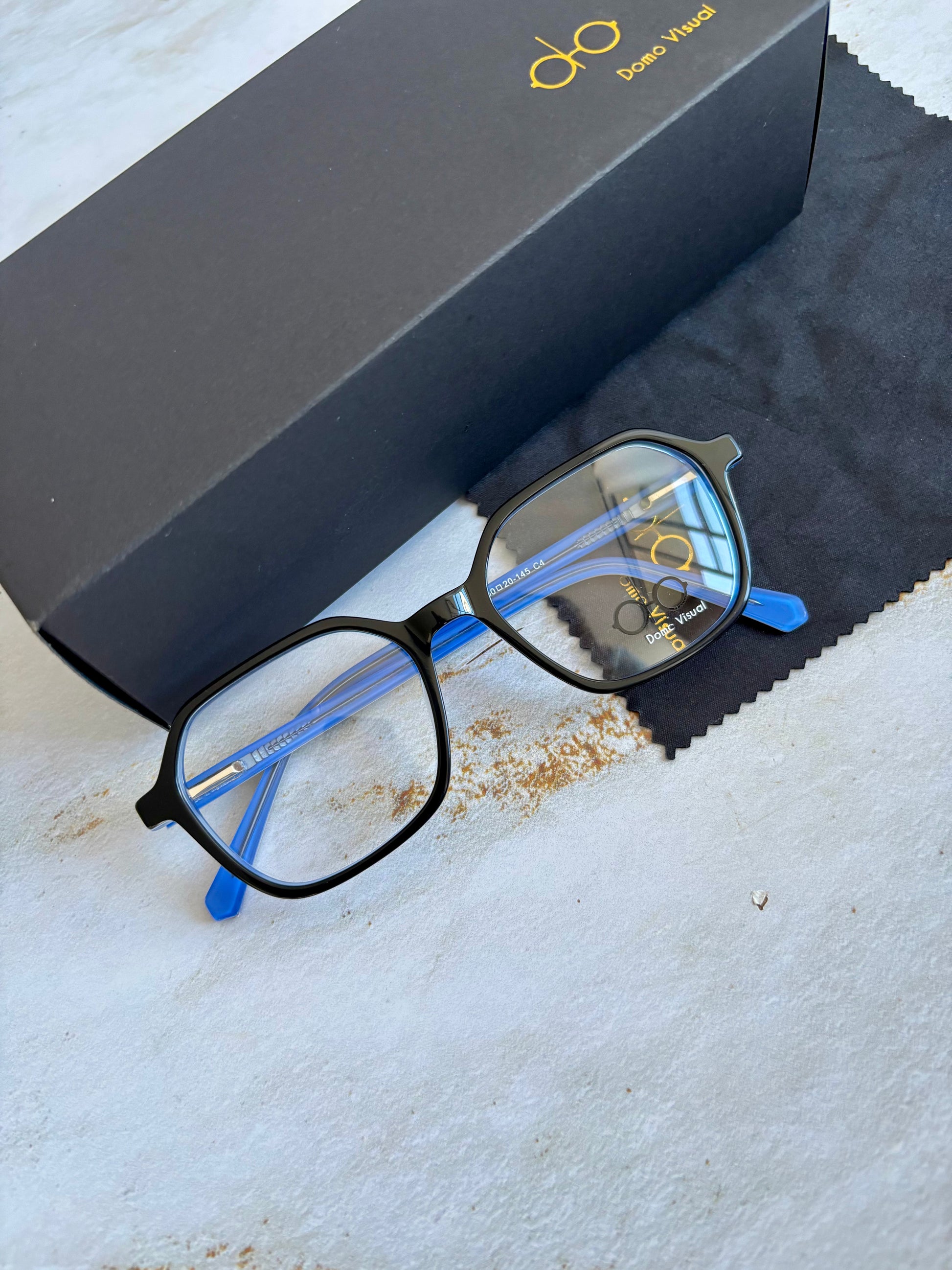 Montura rectangular en acetato, ligera y resistente. Diseño moderno y versátil que se adapta a cualquier ocasión.